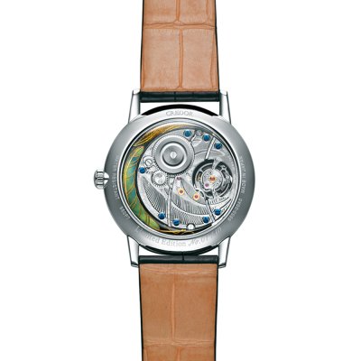The new Caliber 6850 movement, visible through the sapphire crystal case back, features a dynamic design inspired by the primary feathers that generate lift as a bird ascends into the sky. The motif is expressed through a combination of bold and delicate engraving, as well as raden and maki-e, with the design radiating outward from the tourbillon carriage, echoing the story on the dial.