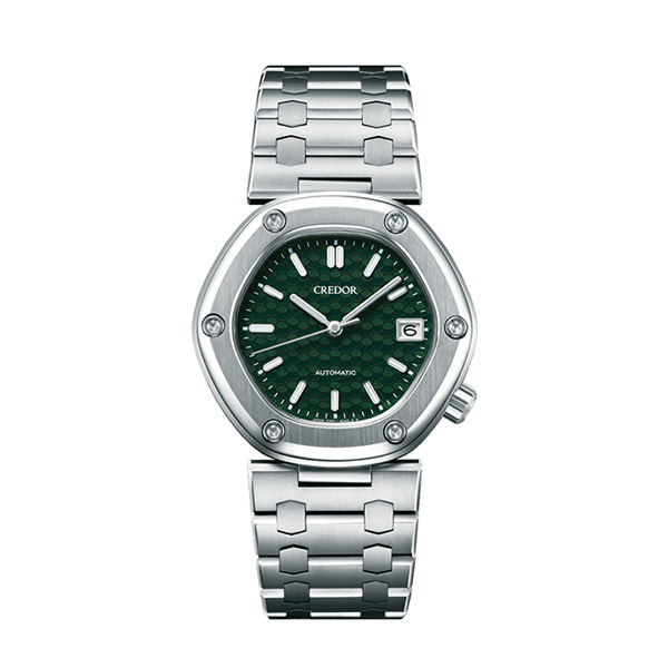 The watch houses Caliber CR01, a new automatic movement exclusive to Credor. This three-hand movement with a date mechanism enables the new Locomotive to maintain a svelte profile with a thickness of less than 9mm, and elegant proportions in line with Gérald Genta’s celebrated original, which used a quartz movement.