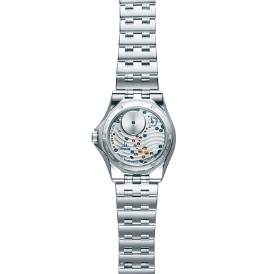 また、シースルーバック仕様の裏ぶたから見ることができるムーブメントには、曲面の模様付けを施しました。香箱からなだらかに広がる模様は、いつまでも変わらない時のなかで、たおやかに湧水が流れる「せせらぎ」を表現しています。