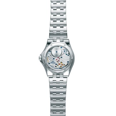また、シースルーバック仕様の裏ぶたから見ることができるムーブメントには、曲面の模様付けを施しました。香箱からなだらかに広がる模様は、いつまでも変わらない時のなかで、たおやかに湧水が流れる「せせらぎ」を表現しています。